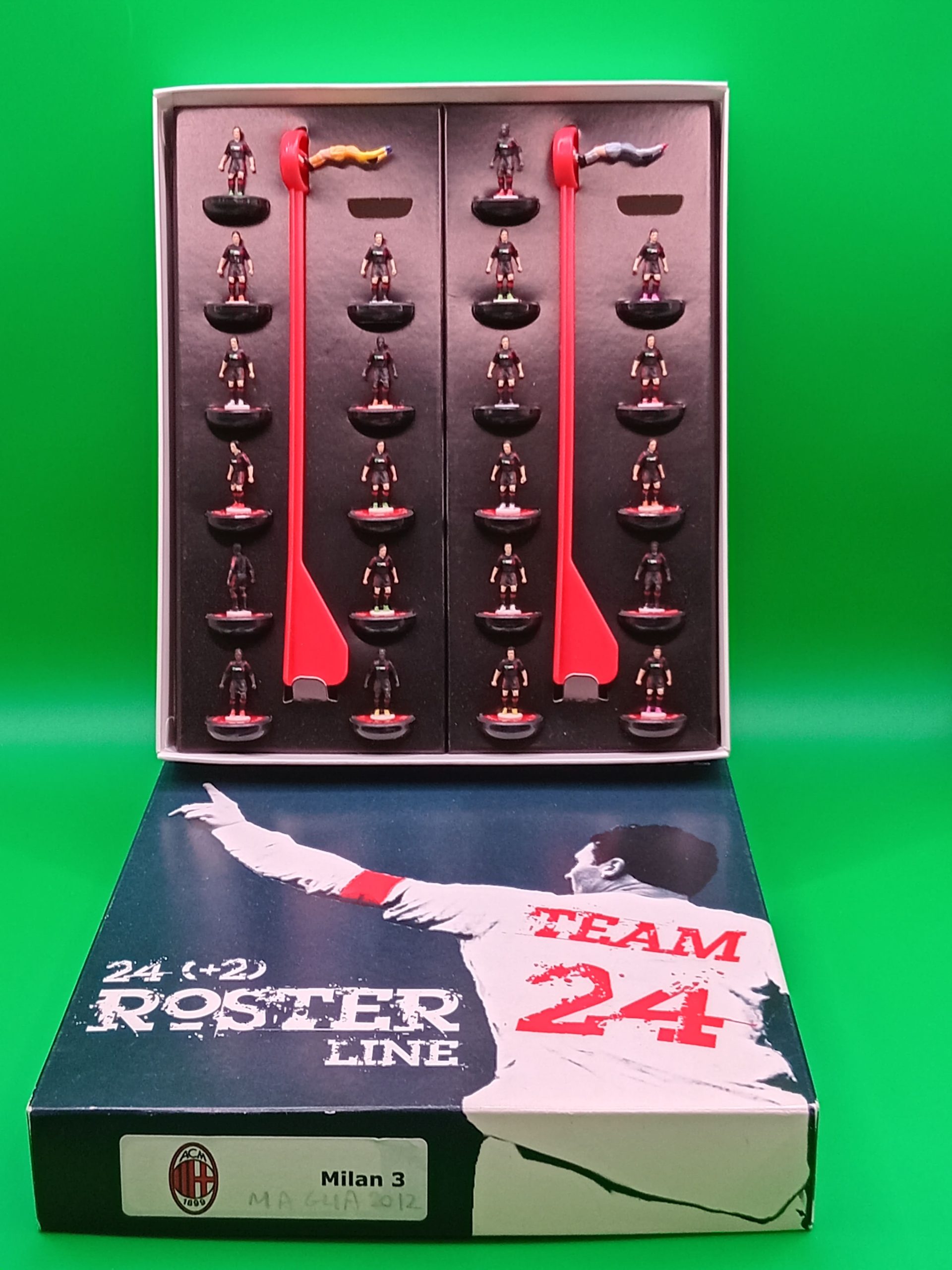 All’interno sono presenti 22 miniature più 2 portieri con asta, come da foto..